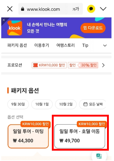 가격은 1인당 49,700원 정도네요.