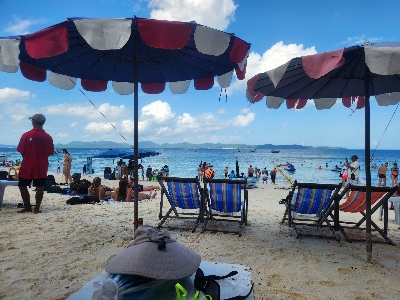 너무 더워서 파라솔을 빌렸는데 2개 빌리니깐 200바트만 내라고 하네요.