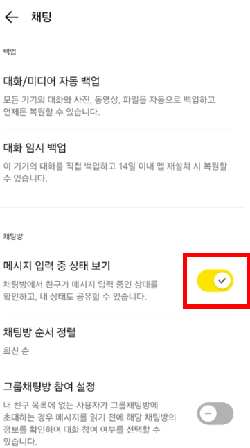 3. 메시지 입력 중 상태보기 -> 체크(노란색) 확인